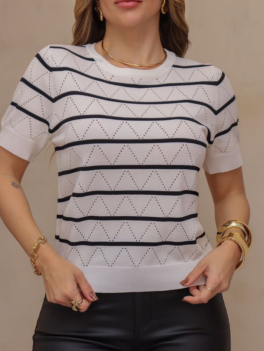 Destaque: A Blusa Modal Fresh Listrada Off White traz um visual leve, atual e extremamente confortável. O tecido modal garante suavidade ao toque e ótimo caimento, enquanto o padrão listrado confere um charme extra ao look.